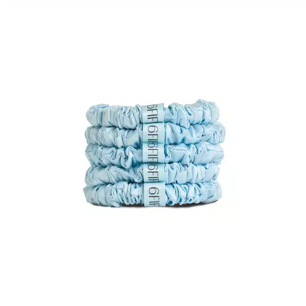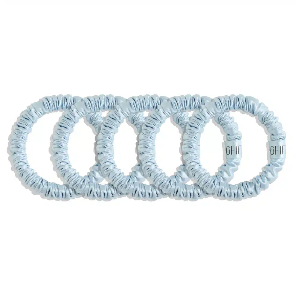elevate your hair routine with the 6FIFTYTWO®️ set of 5 slim silk scrunchies, crafted to protect your hair while adding a touch of everyday luxury. made from 100% pure silk, these scrunchies are designed to minimise breakage, reduce creases, and glide smoothly through all hair types without pulling or snagging. lightweight, slim and refined, they’re perfect for creating effortless styles or wearing on your wrist as a subtle accessory. this curated set includes 5 scrunchies in one signature shade, ideal for those who love consistency, or prefer styling with more than one scrunchie at a time.