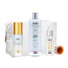 Complete routine with micellar cleanser, hyaluronic serum and colourless repair treatment for clean, hydrated and restored skin.