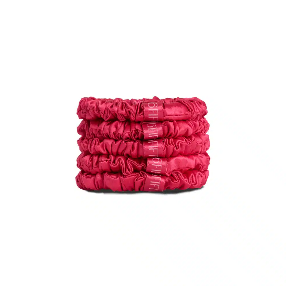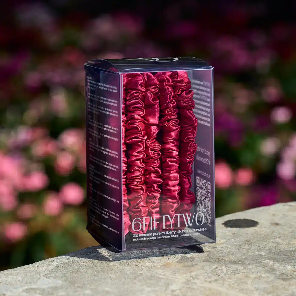 elevate your hair routine with the 6FIFTYTWO®️ set of 5 slim silk scrunchies, crafted to protect your hair while adding a touch of everyday luxury. made from 100% pure silk, these scrunchies are designed to minimise breakage, reduce creases, and glide smoothly through all hair types without pulling or snagging. lightweight, slim and refined, they’re perfect for creating effortless styles or wearing on your wrist as a subtle accessory. this curated set includes 5 scrunchies in one signature shade, ideal for those who love consistency, or prefer styling with more than one scrunchie at a time.